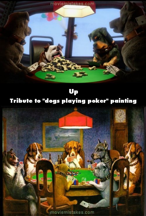 Trivia: A scene in the airship of the dogs playing poker is a homage to the same named series of pictures painted by C.M. Coolidge. A further detail is that instead of having an ace up his sleeve, one of the dogs has the ace hidden in his collar.