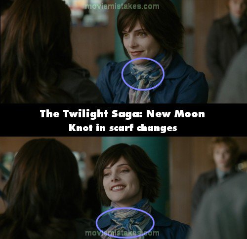 Continuity mistake: When Alice jumps over the staircase in school to wish Bella happy birthday, between shots during the scene the positioning of the decorated scarf around her neck varies. (00:07:30)