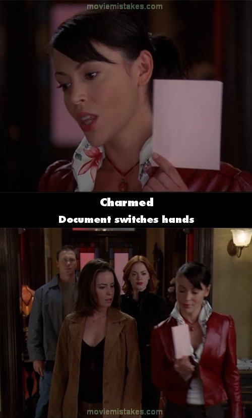 Continuity mistake: When Kaia, pretending to be Phoebe, holds up the document from the bail bondsman, it jumps from her left hand to her right. (00:33:20)