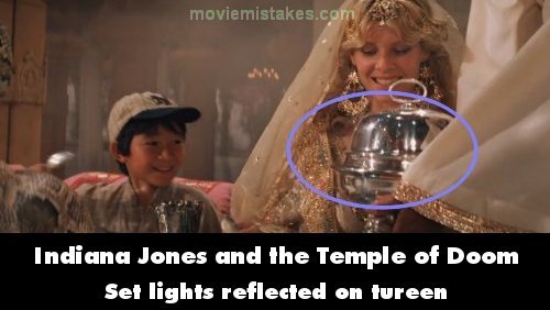 Visible crew/equipment: When Willie is brought the soup, many stage lights are reflected on the tureen, and the guests seated in front disappear.