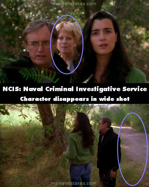Continuity mistake: When Ziva, Ducky, and Dr. Burns find the graveyard, Dr. Burns is visible between Ducky and Ziva's shoulders. She then disappears in the following wide shot, and appears again in the closeup. (00:39:40)