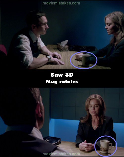 Continuity mistake: When Jill is in the police interview room, the key round her neck keeps moving position, as does the mug by her. (00:10:30)