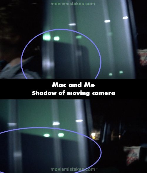Visible crew/equipment: When Eric's brother says that the traffic jam was caused by a drunken alien, the shadow of the moving camera is visible on the outside of the van.