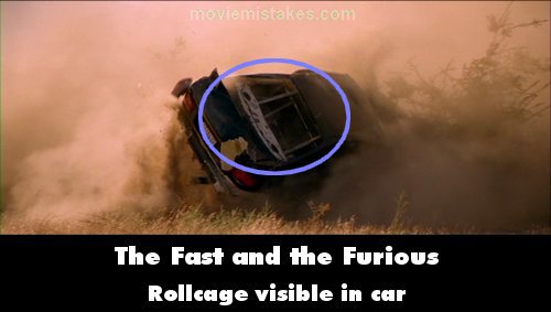 Revealing mistake: When the three Civics are hijacking the truck at the end you see inside Letty's Civic which is basically stock. When she goes off the road and rolls you see the inside is stripped and has a full rollcage. (01:24:20)