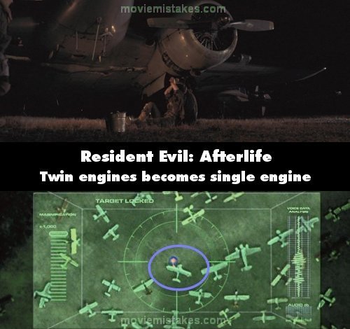 Continuity mistake: Alice ties Claire up to a double engined plane. In the satellite shot, it changes to a single engined plane. (00:25:00)