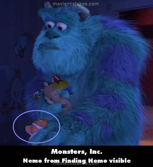 Trivia: Also in the end when Boo is handing her toys to Sully, besides Jessie, and the ball she hands him a clown fish. The fish is called Nemo, and it is from a new Disney and Pixar movie called "Finding Nemo", it is to be released in the summer of 2003.