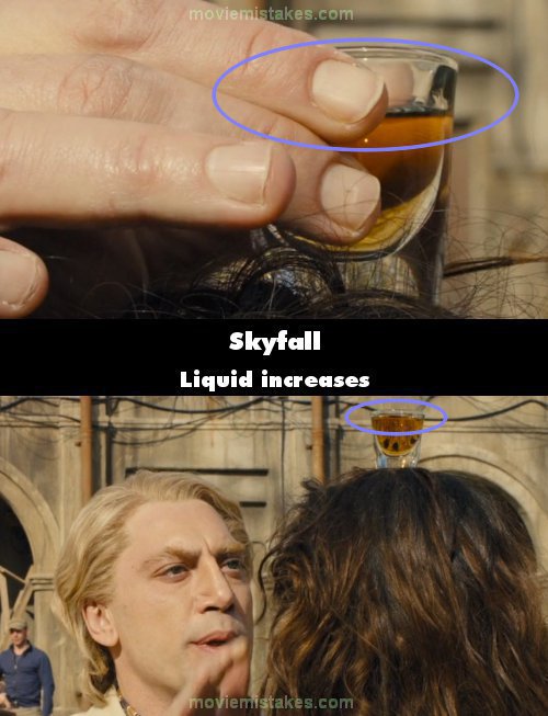 Continuity mistake: When Silva places the glass of whiskey on the girl's head, the liquid is full to the brim in some shots, or a finger below in others. (01:15:15)
