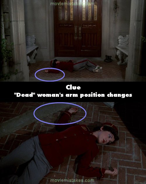 Continuity mistake: The Singing Telegram's body position changes when everyone finds her. (01:04:45)