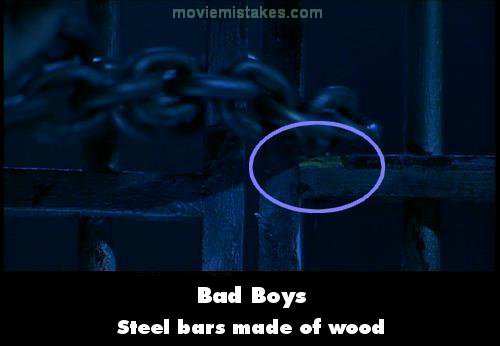 Other mistake: When the bad guys are stealing the drugs and they use the spray to break the lock, they drag the chain off the bars, and if you look closely you can see part of the bar chip off and it's made of wood. (00:08:10)
