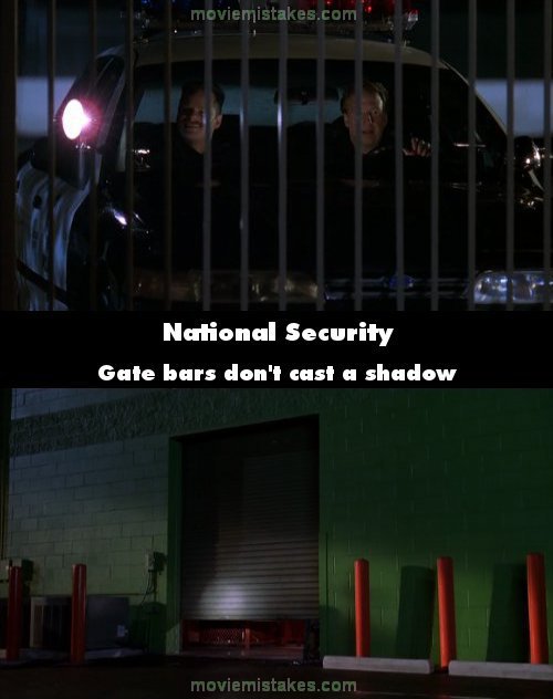 Factual error: When Hank and Charlie first arrive at the warehouse that is being robbed, they shine their spotlight on the opened door. They are shining it through a gate with bars. But in the shots showing the light on the door, there are now shadows cast by the gate. (00:02:25)