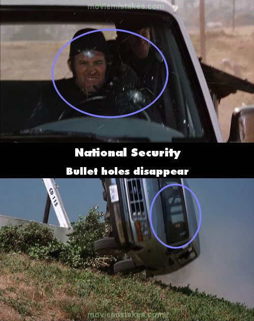 Continuity mistake: At the fort shoot out, Hank shoots at a S.W.A.T. vehicle and hits the driver. Two bullet holes are shown on the windshield. The very next shot shows the vehicle begin to crash, and the bullet holes are gone. (01:15:40)