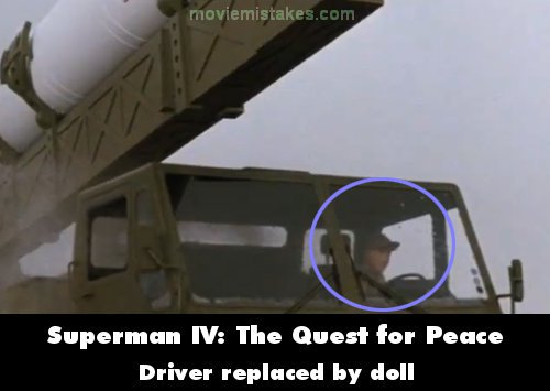 Revealing mistake: Right after Lex, disguised as a soldier, orders the launching of the missile, there's a shot of the truck carrying it. The driver is a cheap mannequin that looks very much like a scarecrow.