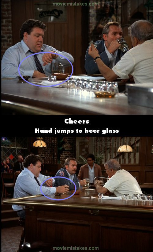 Continuity mistake: Just after Norm says "This man knows his animal kingdom" he looks at his watch and there's nothing in the other hand. In the next shot, his hand is suddenly on his beer glass. (00:20:40)