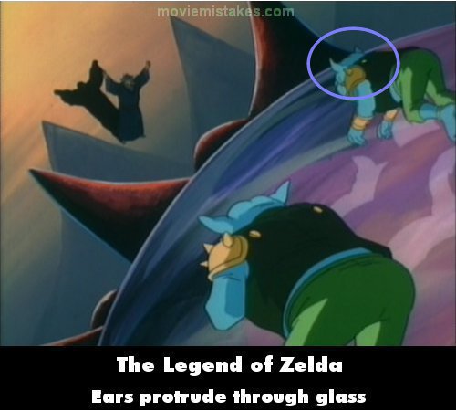 Revealing mistake: During Ganon's rant at the Moblins for failing in their attack, one angle shows two of the Moblins from behind in the Evil Jar. The one on the right is moving up and down, and his ears pass right through the glass of the jar. (00:05:25)