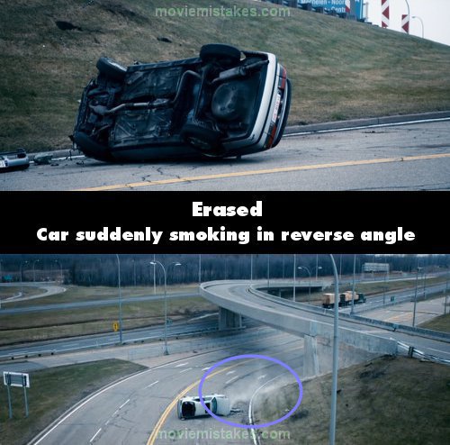Continuity mistake: After the car plummets off the bridge, it slides to a stop on its side. The only smoke seen from it is coming from the tail pipe. The shot cuts to a distance view from the other side, and suddenly there is a lot of smoke coming from the engine. (00:23:10)