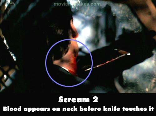 Revealing mistake: When the killer attacks Sid's bodyguards, the younger one has blood on his throat before the killer slashes it.