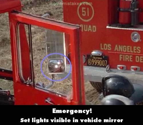 Visible crew/equipment: When Engine and Squad 51 are at the cliff with the young unconscious boy, Captain Stanley calls in to dispatch, with Stoker standing beside him. The reflection of the camera crane and location set lights are visible in the side door mirror.
