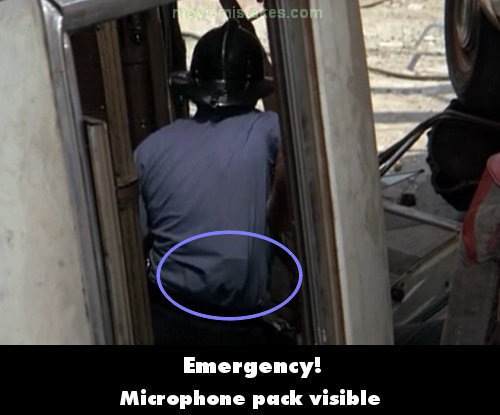 Visible crew/equipment: At the auto wrecking yard, when Billy is with the man trapped in the car, Gage tosses the tourniquet and bandages to Billy, and when Billy turns around the outlines of the mic transmitter and its cable are visible on the back of his shirt.