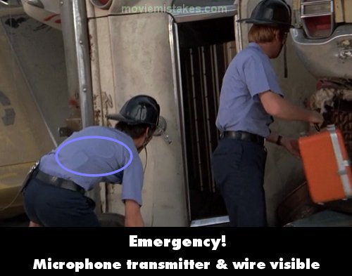 Visible crew/equipment: When DeSoto puts down the Biophone at the auto wrecking yard, the outlines of the mic transmitter and its cable are visible on the back of Gage's shirt as he bends over.