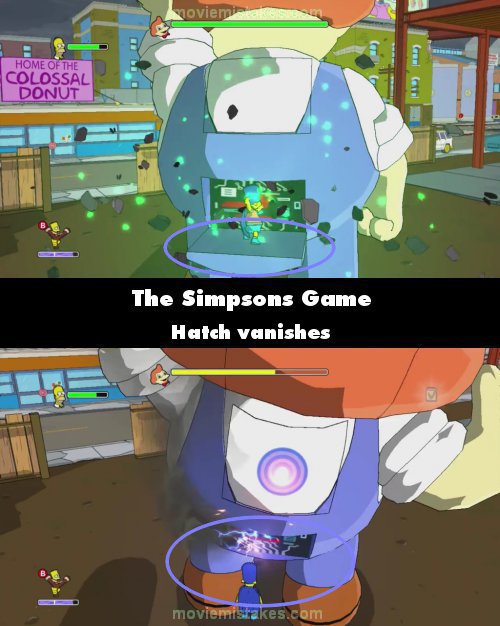 Other mistake: Shadow of the Colossal Donut: Homer and Bart's main and only objective in this level is to open each of the three hatches inside Lard Lad and rip out the circuits inside him. To open the hatch, Bart will need to launch a slingshot at Lard Lad's hatches. After the hatch is opened, and the circuits have been ripped out, the hatch will always vanish completely.