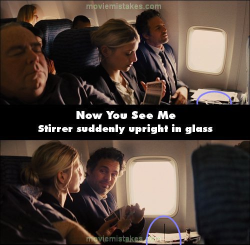 Continuity mistake: When Dylan and Alma are on the plane, as the shot pans around to them, Alma has a drink with a stirrer, which is on the edge of the cup. Alma then asks Dylan to pick out a card and put it back in the deck. If you look at Alma's drink, the stirrer is now sticking upwards in the middle of the cup. (00:40:45)