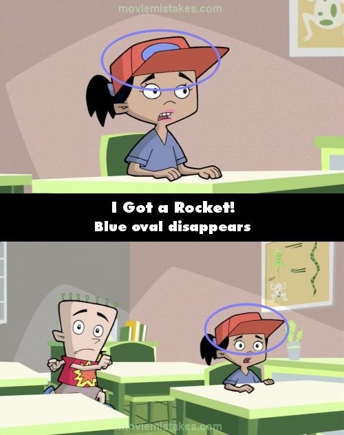 Continuity mistake: In the last classroom scene, the blue oval design on Gabby's cap appears and disappears between a few of the last shots of the scene, first when Vinnie runs up to Professor Q (because Rocket went ahead and switched both his and Gabby's test papers) and later when Professor Q was talking about how he was ∞ proud of Vinnie. (00:10:10)