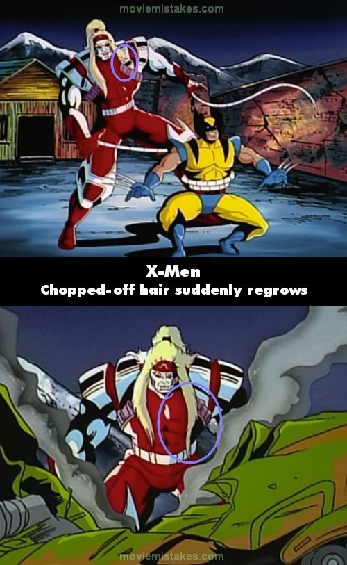 Continuity mistake: When Wolverine lunges after Omega Red, he cuts off some of his hair, and the left side of Omega Red's hair is visibly shorter. A few moments later, his hair is back to its original length. (00:12:45)