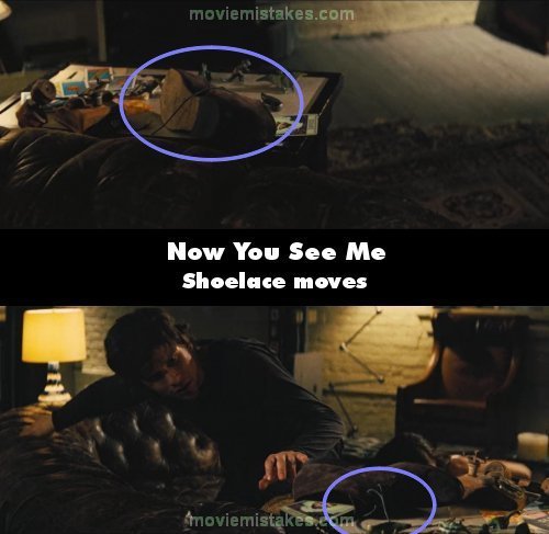 Continuity mistake: When Daniel is in his room and pushes off the woman on top of him, he crawls over to the tarot card in his shoe. When the woman yells "Are you kidding me?", the left shoelace is lying over the left side of the shoe, but when Daniel approaches the shoe in the next shot, the shoelace isn't in the same place. (00:08:10)