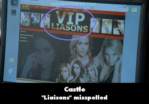 Character mistake: When the private investigator shows Castle and Beckett the VIP Liaisons website, "Liaison" is misspelled "Liason." (00:17:40)