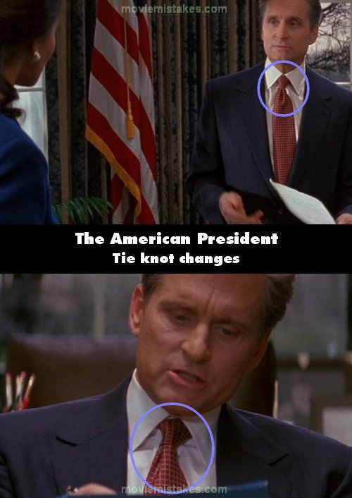 Continuity mistake: On the morning the film begins, the president is sporting a red tie. The way it is tied changes, most noticeably during his discussion about the Crime Bill.