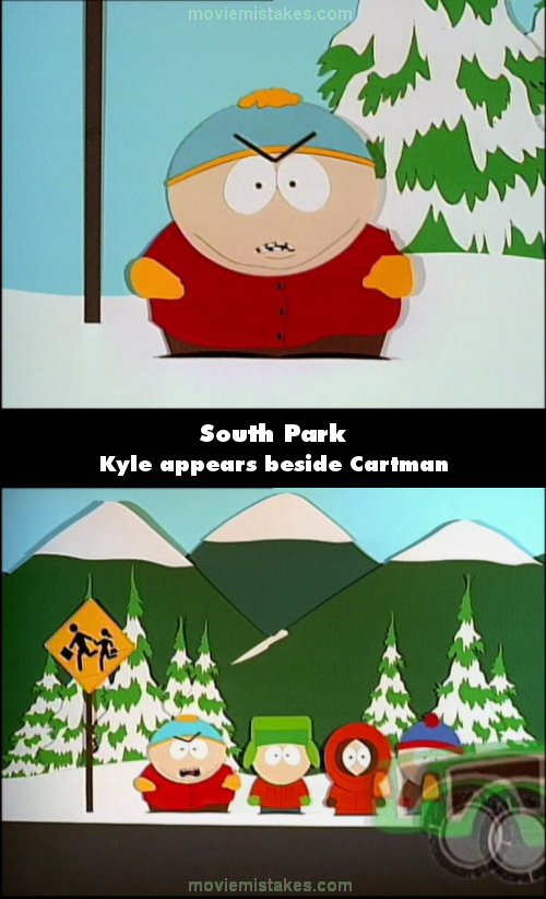 Continuity mistake: When Cartman is saying how the others are trying to scare him, you can see Kyle is not stood next to him. Camera cuts and now Kyle is there. (00:04:20)