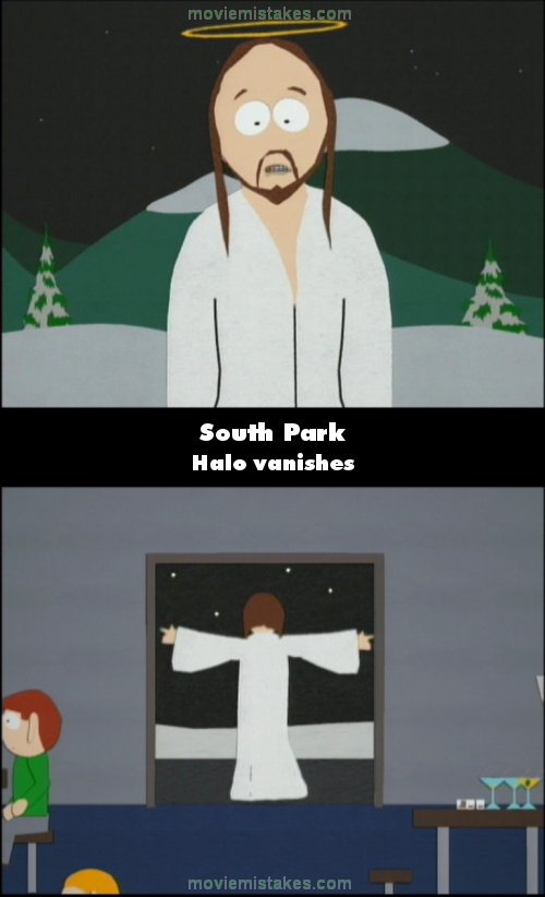 Continuity mistake: When Jesus leaves the bar his halo disappears instantly, only to return in the next shot. (00:14:30)