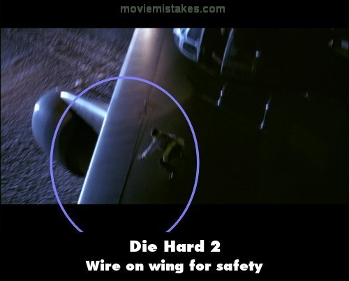 Revealing mistake: McClane jumps out of the helicopter at the end and lands on the wing of the larger airplane. The stunt man who does this then proceeds to move up to a long wire on the side of the wing. Any normal airplane would not have a long wire on the wing.