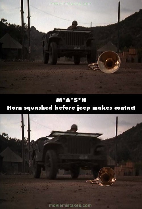 Revealing mistake: When Margaret whistles for the "third wave" she places Winchester's French horn on the ground, and there are three shots facing the jeep as it closes in on the horn - in the first two shots the horn's normal, but in the last shot the horn's already semi-squashed before the jeep even runs over it.