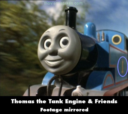Deliberate mistake: When Thomas goes by the level crossing, a close up of Thomas is shown but it's the same footage from season 1, only flipped. Because of this, Thomas' number is mirrored.