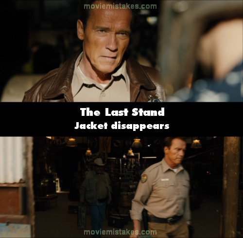 Continuity mistake: When gearing up for Cortez's arrival, Ray has got a leather jacket on. When they leave to get in the trucks, the jacket has disappeared. (00:59:00)