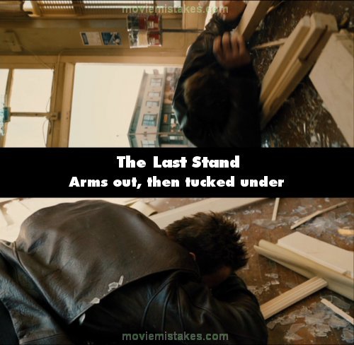 Continuity mistake: When Ray dives through the Diner doors, he lands with his arms outstretched. When the camera cuts his arms are under him. (01:12:10)