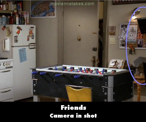 Visible crew/equipment: After Phoebe's Princess Leia impersonation in front of Ross it cuts to Joey watching Wheel of Fortune, and in the next shot as Chandler walks in the camera can be seen at the right side of the screen.