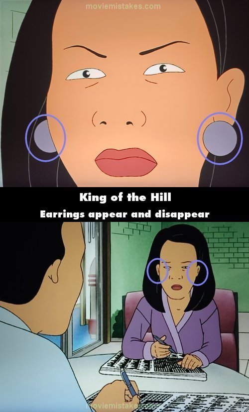 Continuity mistake: The scene where Minh and Kahn are sitting together, they look into each other's eyes. When she is not looking right into his eyes, she has no earrings, when she looks into his eyes, she has earrings, then it zooms out and shows her with no earrings. (00:04:30)