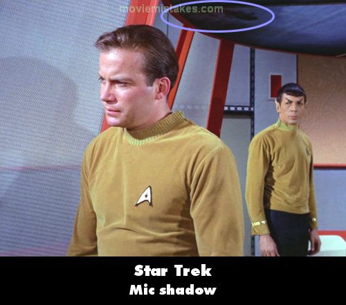 Visible crew/equipment: After Kirk's briefing regarding Mitchell's abilities, when Spock and Kirk are alone just as Spock says that they'll never reach an earth base with Mitchell aboard, the boom mic casts a shadow overhead until Spock steps forward, and a bit can be seen again when Spock tells Kirk that it's his only choice. (00:24:50)