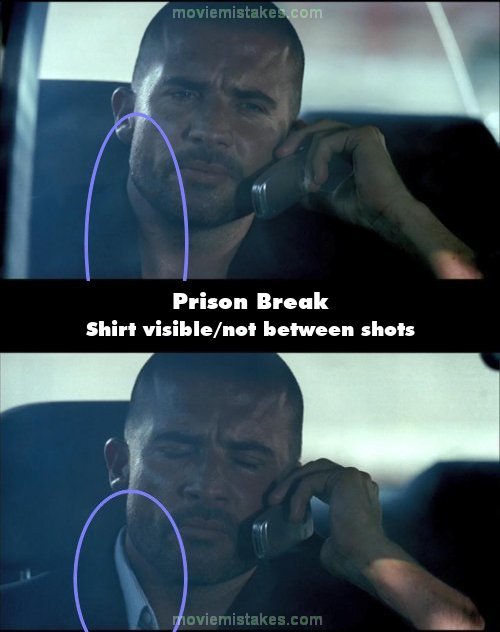 Continuity mistake: When Lincoln Borrows is secretly talking to his son in prison using a cell phone, he is seen wearing an inner blue plaid shirt for most of the scenes before. As the conversion starts and focus switches between the two, the inner shirt is visible and not visible. It disappears and re-appears three times during the conversation. (00:20:00)