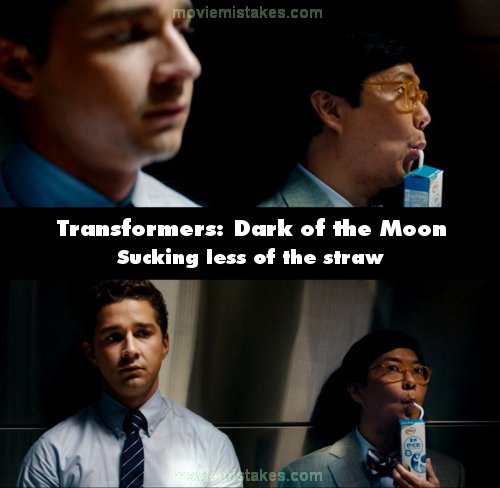 Continuity mistake: When Sam and Jerry Wang are in the elevator, just after the other co-workers leave, Jerry takes a drink from his milk carton, placing the straw in his mouth, from the top of the straw, down to the hinge section. The shot cuts and there is suddenly less of the straw in his mouth. (00:40:00)