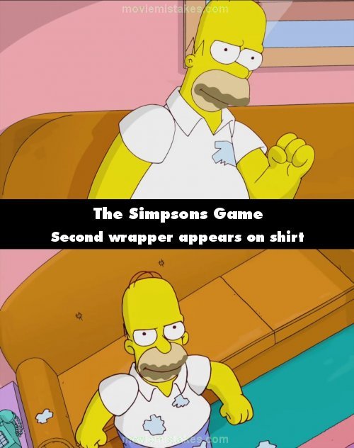 Continuity mistake: The Land of Chocolate: When Homer wakes up from his dream, there is one wrapper on his chest and as he goes to stand up, there are no wrappers visible on his abdomen. In the next shot, a wrapper has suddenly appeared.