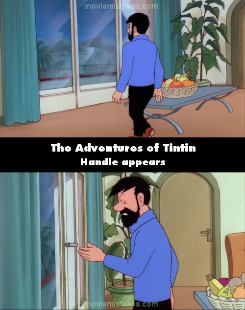 Continuity mistake: Haddock gets up from his seat and goes to open the windows. In the shot of him walking over, there is nothing on the window. In the next shot, a handle used to open the window with has suddenly appeared. (00:09:45)