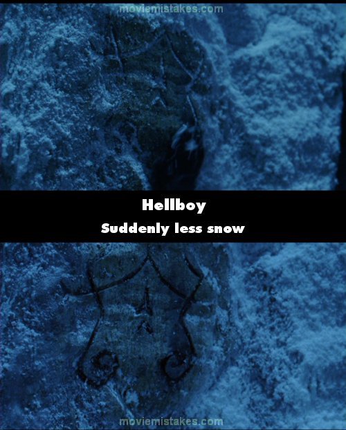 Continuity mistake: When scraping the snow off thee wall at the start, the amount of snow changes drastically and instantly. The lines of the engraving are clear of snow instantly. (00:14:30)