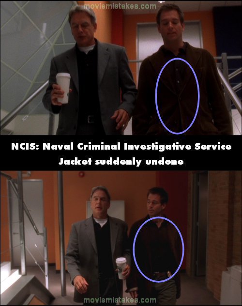 Continuity mistake: When Gibbs and Tony are talking about bringing McAllastair in, Tony's jacket is done up, then undone, then done up again in successive shots. (00:29:20)