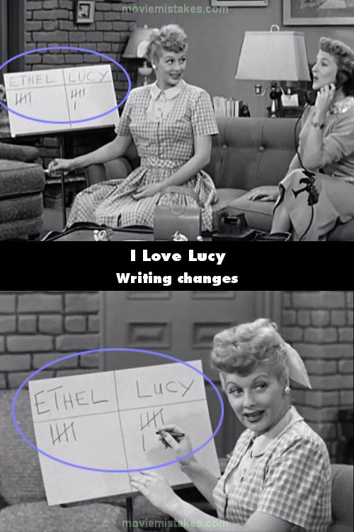 Continuity mistake: While Lucy's taking a tally of who everyone's voting for, the writing on the posterboard changes in Lucy's closeups. (00:14:45)