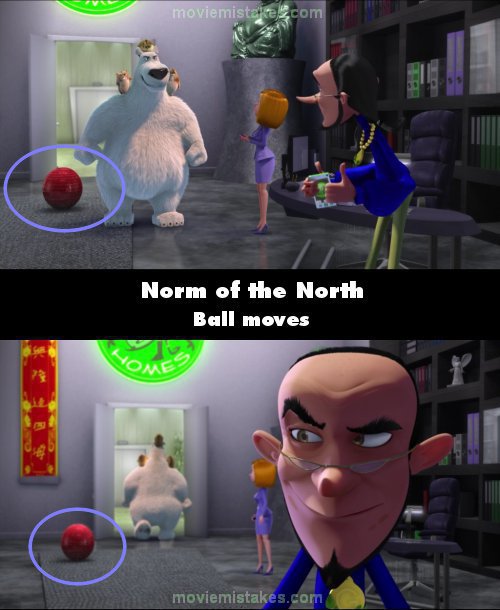 Continuity mistake: When Norm barges into Mr. Greene's office to confront him about rigging the announcement, Mr. Greene's ball chair is on the rug positioned close to the edge and located near to the centre, but when Norm goes to leave the room about a minute later, the ball chair has moved much nearer to the opposite end of the rug. (00:59:55 - 01:00:50)