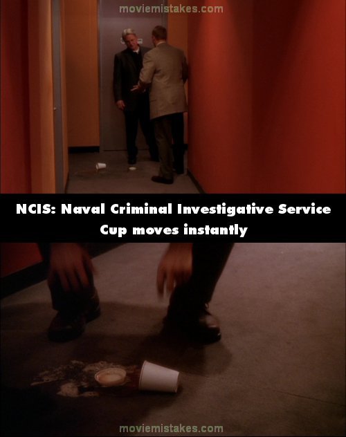 Continuity mistake: McGee knocks into Gibbs who drops his coffee. The position of the cup in relation to the lid changes drastically between the long shot and the close up. (00:12:40)