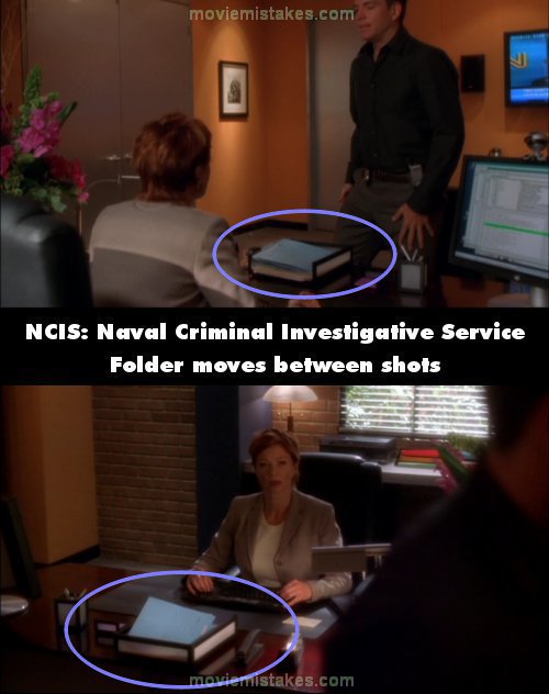 Continuity mistake: Tony places the blue folder in Jenny's tray on her desk neatly. When he goes to leave it is now propped up on one side of the tray. (00:04:25)